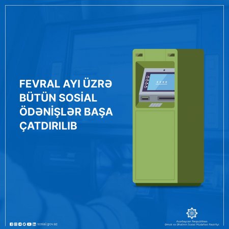 Fevral ayı üzrə bütün sosial ödənişlər başa çatdırılıb