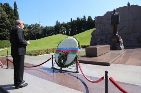 Ərdoğan Heydər Əliyevin məzarını ziyarət etdi - FOTO