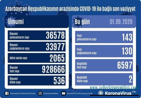Bu gün neçə nəfər koronaya yoluxub? - Rəsmi